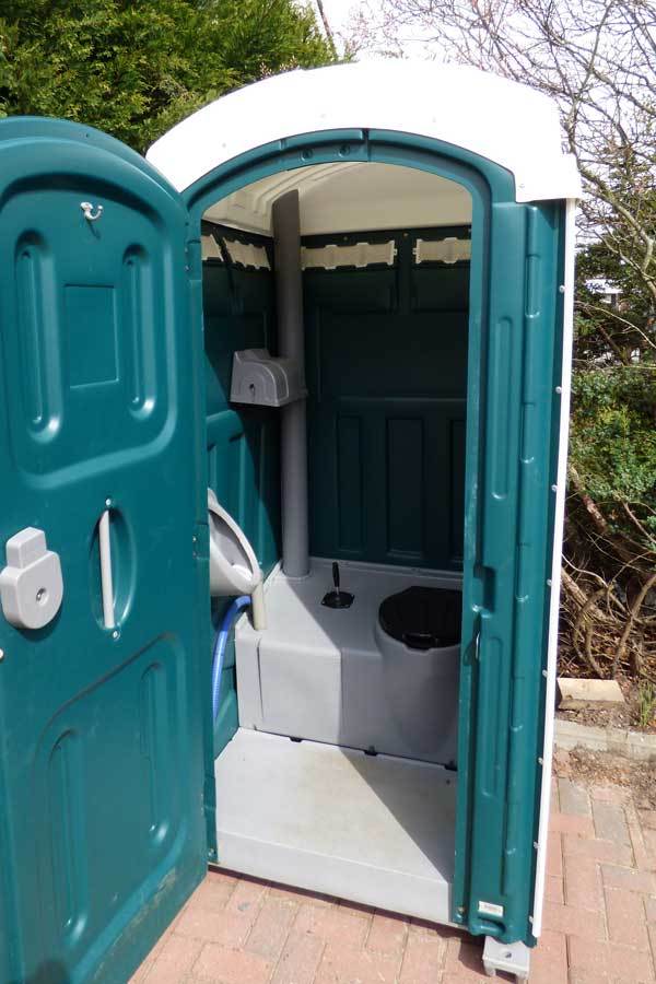 De luxe uitvoering Eco C-tje is voorzien van een urinoir en standaard toilet met toiletdeksel. Dit type Eco C heeft een eigen spoelsysteem.